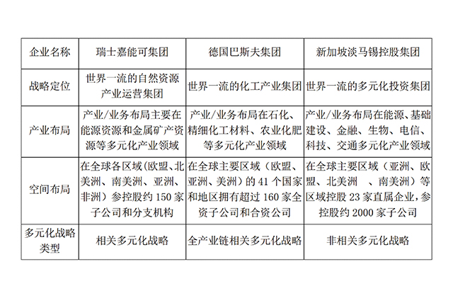 本文選取瑞士嘉能可集團公司、德國巴斯夫集團公司、新加坡淡馬錫集團公司等兩類、三家世界一流標(biāo)桿企業(yè),開展多元化戰(zhàn)略的對標(biāo)分析,從中提煉出大企業(yè)集團如何更好開展多元化戰(zhàn)略的借鑒與啟示(見下表),分述如下。