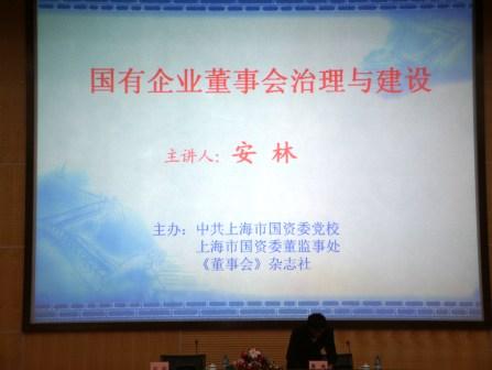 2009年11月18日,求是咨詢總裁安林博士受邀上海市國(guó)資委黨校(暨上海市經(jīng)濟(jì)管理干部學(xué)院)開講《國(guó)企董事會(huì)治理與建設(shè):?jiǎn)栴}、難點(diǎn)與熱點(diǎn)》