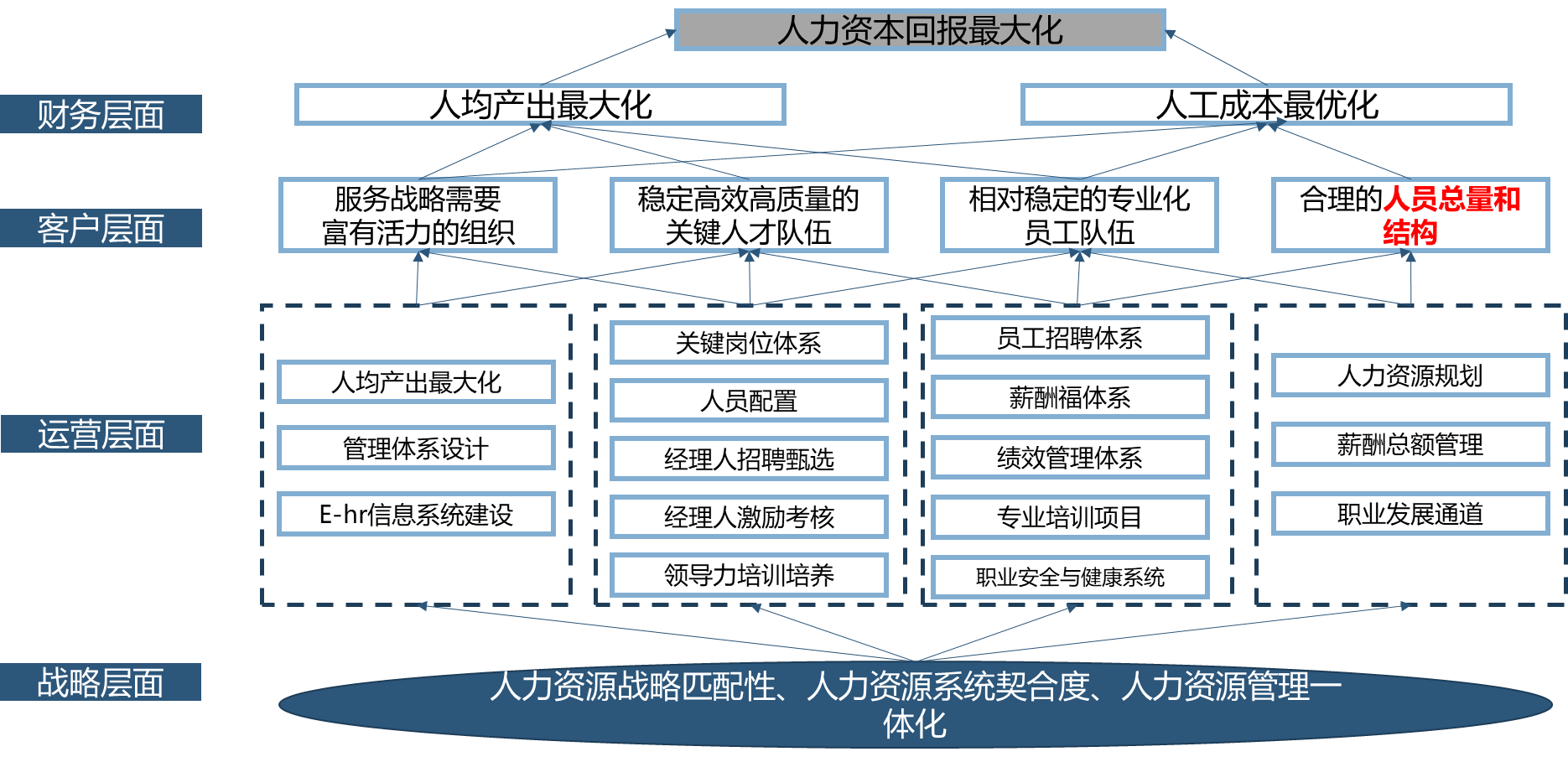 以公司經(jīng)營發(fā)展戰(zhàn)略為先導(dǎo),遵循提高組織效率的原則,從企業(yè)發(fā)展階段、信息化水平、管理水平、員工能力、技術(shù)水平等實(shí)際出發(fā),運(yùn)用科學(xué)的工具方法,按照宏觀微觀分層、崗位類別分類確定編制數(shù)量,達(dá)到合理設(shè)置崗位和分配人力資源、提高企業(yè)運(yùn)營效率的目的。