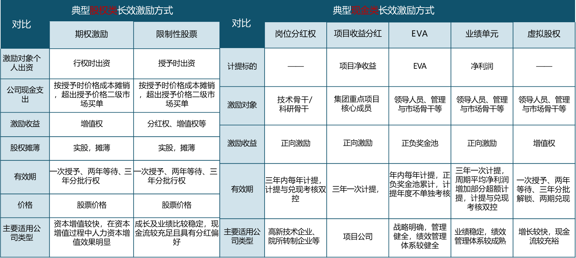 那么對于國有企業(yè)而言,中長期激勵基礎政策是關鍵。自2019年國企改革“雙百九條”發(fā)布以來,國家在國企中長期激勵體系建設上進一步突破創(chuàng)新,由同一企業(yè)原則上以一種激勵方式為主,向鼓勵企業(yè)解放思想、綜合運用各項正向激勵工具轉變。