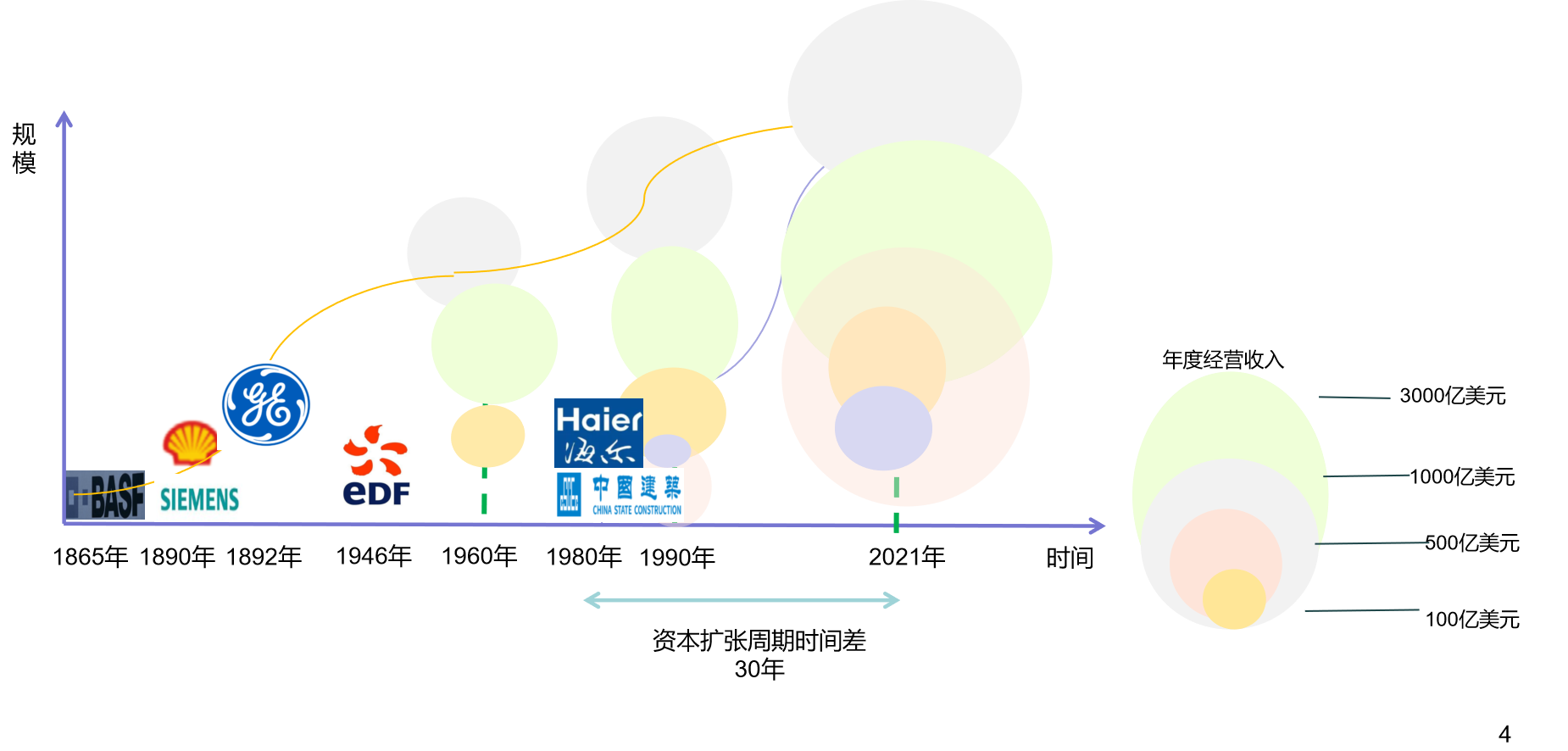 世界一流企業(yè)集團(tuán)演化圖譜分析表明,大型企業(yè)集團(tuán)一般將經(jīng)歷漫長(zhǎng)初創(chuàng)和細(xì)分業(yè)務(wù)成長(zhǎng)期,而后采用產(chǎn)業(yè)、區(qū)域布局的多元化戰(zhàn)略,經(jīng)營(yíng)規(guī)??焖僭鲩L(zhǎng),對(duì)比近十年中國(guó)大型企業(yè)集團(tuán)規(guī)模快速增長(zhǎng)。