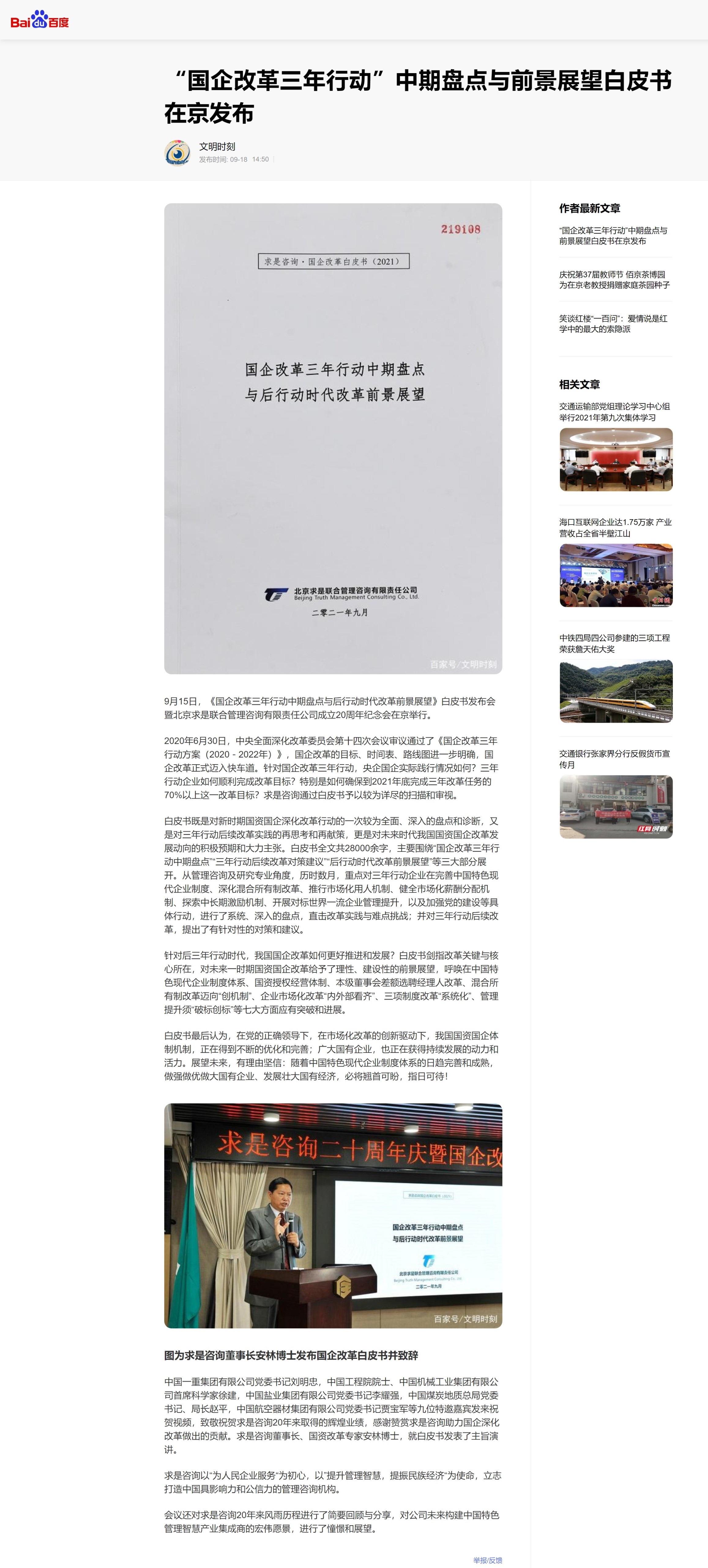 《百度》:“國企改革三年行動”中期盤點與前景展望白皮書在京發(fā)布