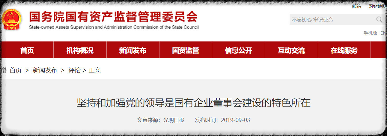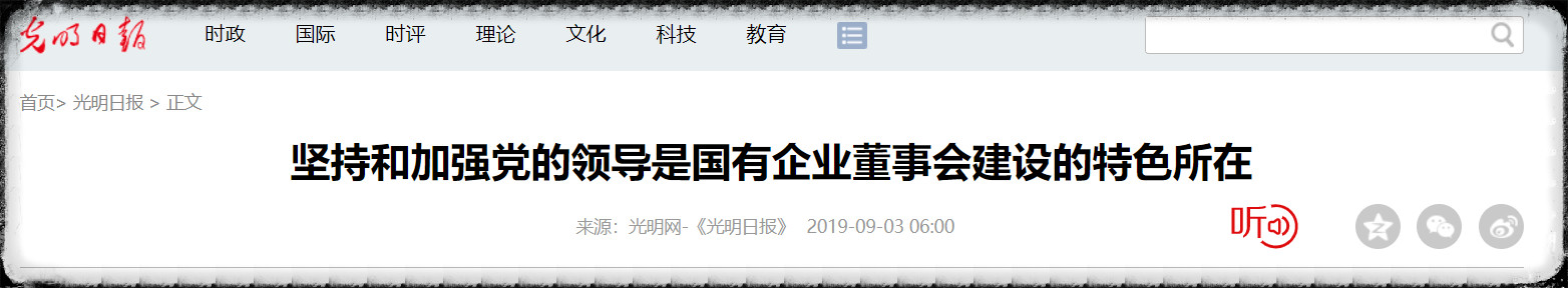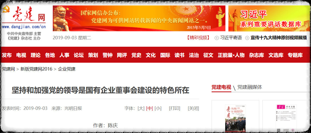 2019年9月3日,《光明日報》經(jīng)濟學理論版刊發(fā)了求是咨詢總經(jīng)理、首都經(jīng)濟貿(mào)易大學工商管理學院副教授陳慶博士《堅持和加強黨的領(lǐng)導是國有企業(yè)董事會建設的特色所在》的署名文章。陳慶博士結(jié)合求是咨詢多年黨建咨詢經(jīng)驗和研究成果,清晰梳理了國有企業(yè)董事會建設在試點、規(guī)范和完善等不同階段黨組織地位變化的發(fā)展邏輯,創(chuàng)造性地提出:黨組織在公司法人治理中法定地位的確立,實現(xiàn)了中國特色國有企業(yè)董事會建設的理論創(chuàng)新。文章被光明網(wǎng)、人民網(wǎng)、國務院國有資產(chǎn)管理委員會、黨建網(wǎng)等多家官媒、網(wǎng)站轉(zhuǎn)載。