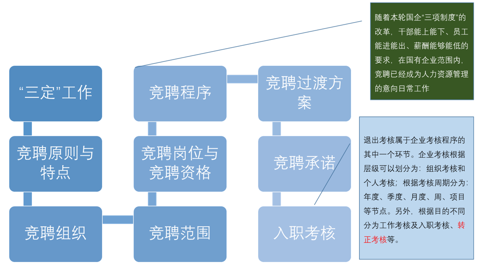 競聘不僅僅是一個(gè)選拔的過程,應(yīng)該是上承企業(yè)的“三定” ,下接企業(yè)的績效評估的全過程。