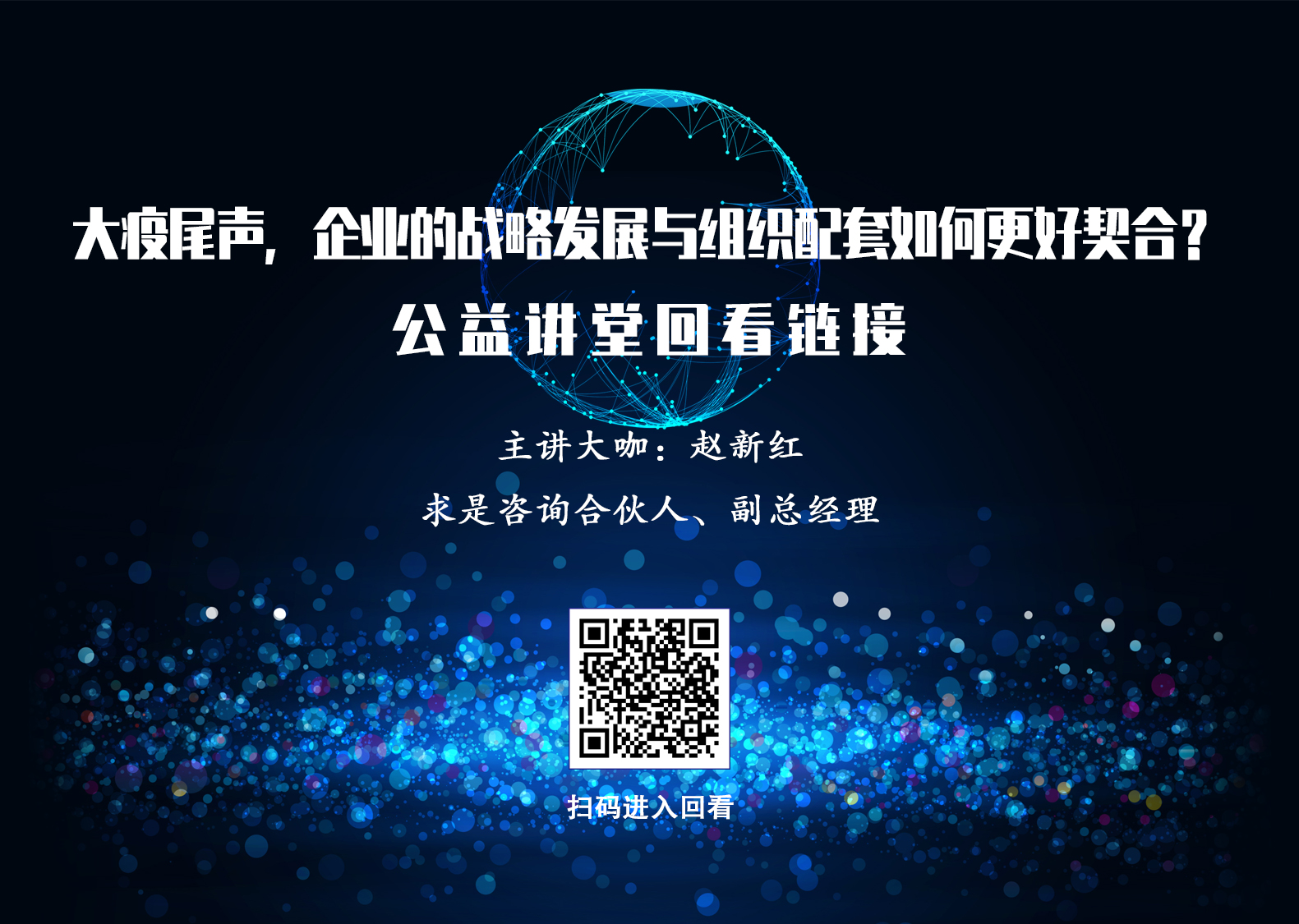 錯過直播的朋友,請進(jìn)入求是咨詢《大疫尾聲,企業(yè)的戰(zhàn)略發(fā)展與組織配套如何更好契合?》公益講堂直播回看,精彩不容再失!