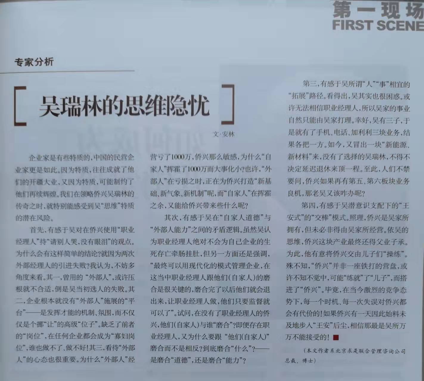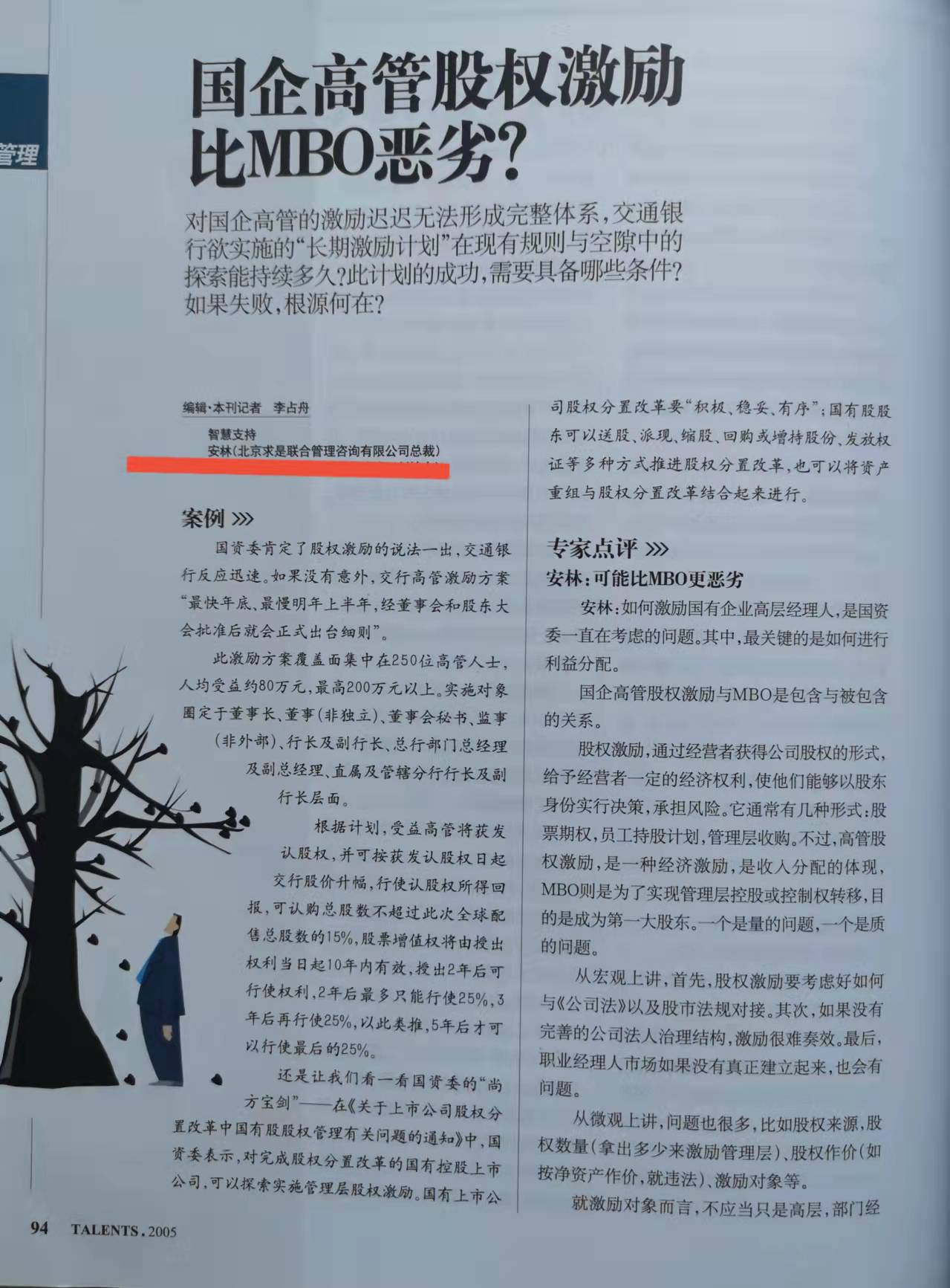 2004年,求是咨詢總裁、名企研究專家、管理學(xué)博士安林,活聘《英才》雜志專家委員會“企業(yè)咨詢專家”,撰寫專欄文章,提供專家點評和專題智慧支持。