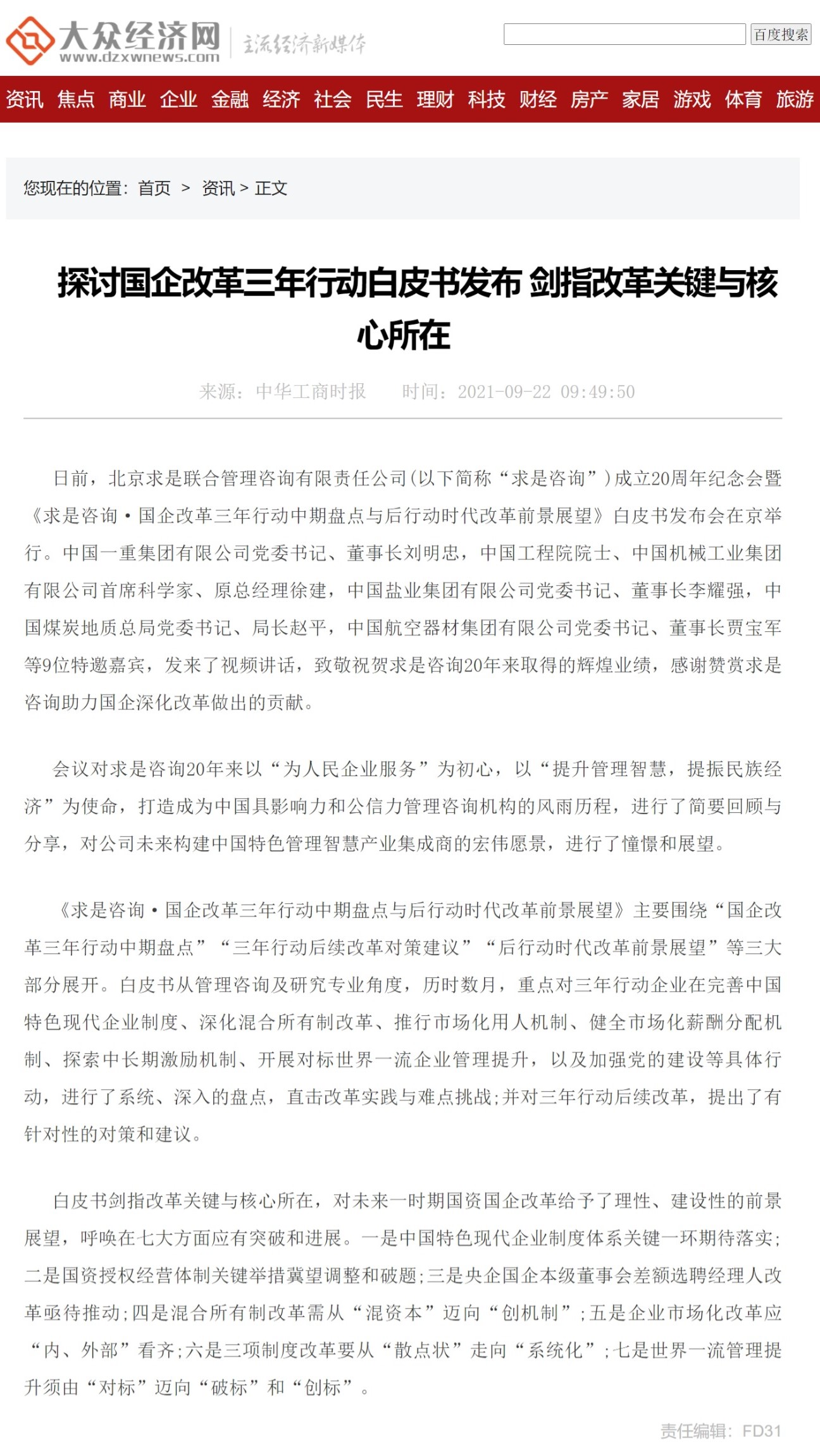 《大眾經(jīng)濟(jì)網(wǎng)》:探討國(guó)企改革三年行動(dòng)白皮書(shū)發(fā)布 劍指改革關(guān)鍵與核心所在