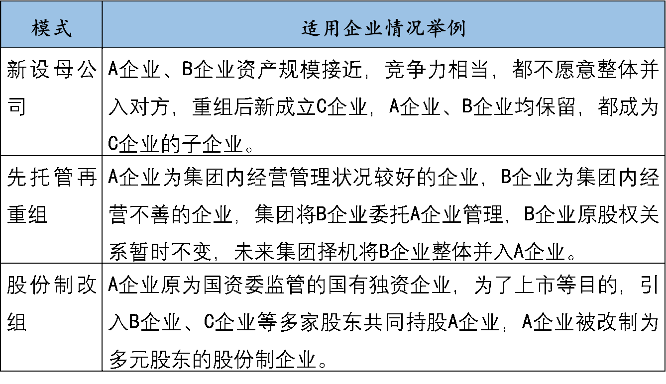 以中央企業(yè)為例,重組主要有六種模式:整體并入、吸收合并、新設(shè)合并、新設(shè)母公司、先托管再重組、股份制改組。