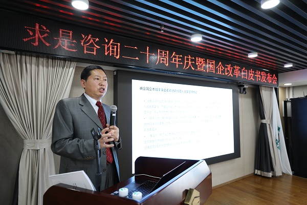 求是咨詢(xún)董事長(zhǎng)、國(guó)資改革專(zhuān)家安林博士(下圖),就白皮書(shū)發(fā)表了主旨演講。