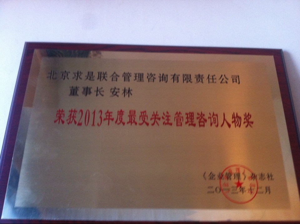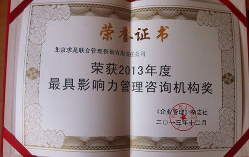 求是咨詢及公司董事長(zhǎng)安林博士,因多年來在推進(jìn)我國(guó)管理咨詢業(yè)發(fā)展所發(fā)揮的顯著作用,及在完善國(guó)資管理體制、提升企業(yè)管理水平所作出的突出貢獻(xiàn),經(jīng)由《企業(yè)管理》雜志社及北大、清華、美國(guó)康奈爾大學(xué)等知名專家學(xué)者組成的專家委員會(huì)評(píng)定,分別榮獲“2013年度最具影響力管理咨詢機(jī)構(gòu)獎(jiǎng)”和“2013年度最受關(guān)注管理咨詢?nèi)宋铼?jiǎng)”。我公司也是此次榮獲“雙料獎(jiǎng)項(xiàng)”的唯一管理咨詢機(jī)構(gòu)。