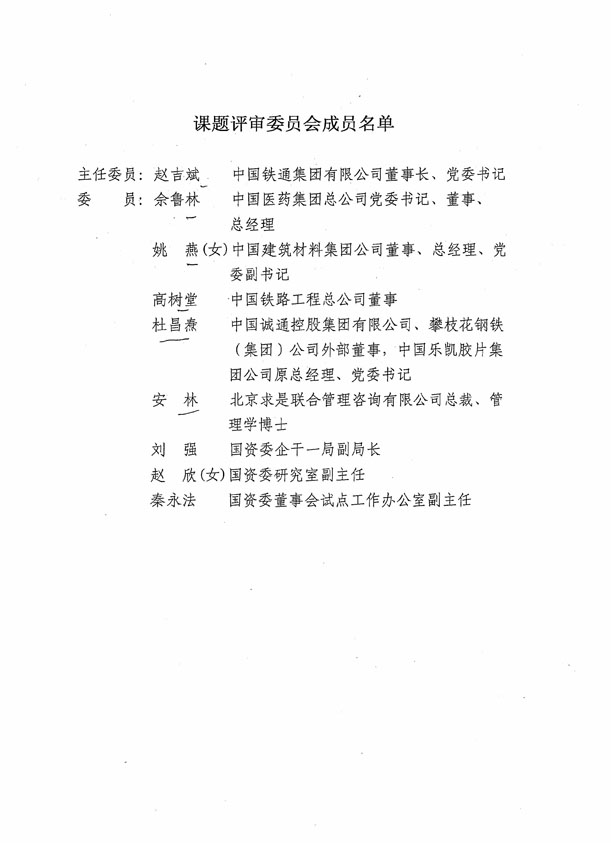 2006年12月,求是咨詢董事長安林博士受國務(wù)院國資委企業(yè)領(lǐng)導(dǎo)人員管理二局邀請,作為國資系統(tǒng)外唯一專家,參加其重點研究課題《國有獨資公司外部董事選聘問題研究》的組織評審。