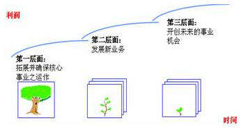 人無(wú)遠(yuǎn)慮必有近憂(yōu),要想持續(xù)的發(fā)展,企業(yè)必須做到吃著嘴里的、占著碗里的、惦記著鍋里的、尋思著地里的。企業(yè)必須不斷地開(kāi)展促進(jìn)業(yè)務(wù)增長(zhǎng)的各種活動(dòng),將未來(lái)業(yè)務(wù)放到與當(dāng)前業(yè)務(wù)同等重視程度的位置上來(lái),并且在未來(lái)業(yè)務(wù)和當(dāng)前業(yè)務(wù)之間求得一種平衡。比如,麥肯錫提出的三層次模型,說(shuō)的就是這個(gè)意思。