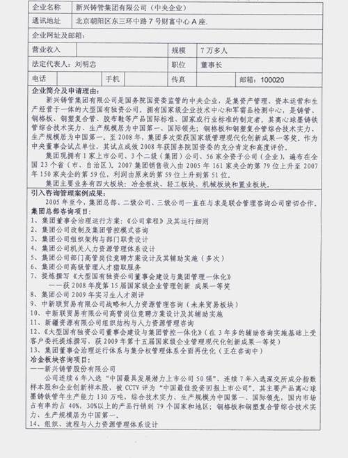 在剛剛結(jié)束的“統(tǒng)籌城鄉(xiāng)改革發(fā)展論壇暨第六屆(2009)中國管理咨詢高峰會”上,我司資深客戶中央企業(yè)新興鑄管集團(tuán)有限公司經(jīng)組織初審、機(jī)構(gòu)推薦、網(wǎng)絡(luò)投票和專家組評議,榮獲首屆“引入管理中國最佳實(shí)踐企業(yè)”獎(jiǎng)。該集團(tuán)辦公室主任宋春利出席大會并領(lǐng)獎(jiǎng)。