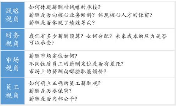 明確薪酬設(shè)計(jì)需要關(guān)注的重點(diǎn)——從戰(zhàn)略、員工、市場(chǎng)及財(cái)務(wù)四個(gè)維度全面評(píng)估現(xiàn)有薪酬體系。薪酬激勵(lì)的核心在于通過對(duì)薪酬體系的設(shè)定,激發(fā)員工工作積極性從而實(shí)現(xiàn)公司經(jīng)營目標(biāo)。
